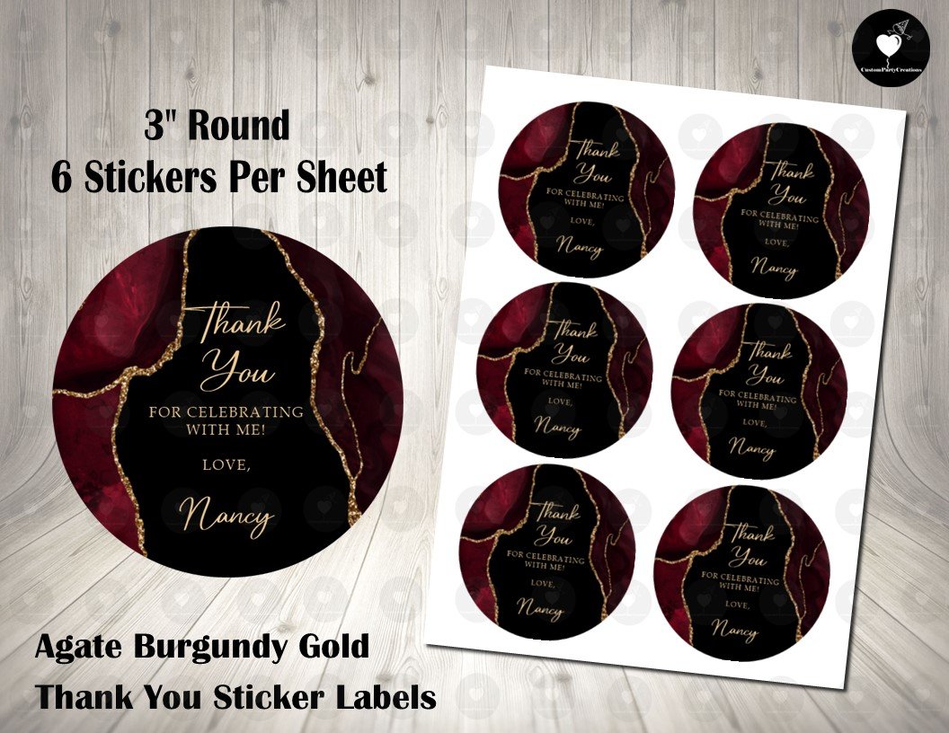 RUSH MY ORDER – Agate Burgundy 3″ Round Thank You Stickers