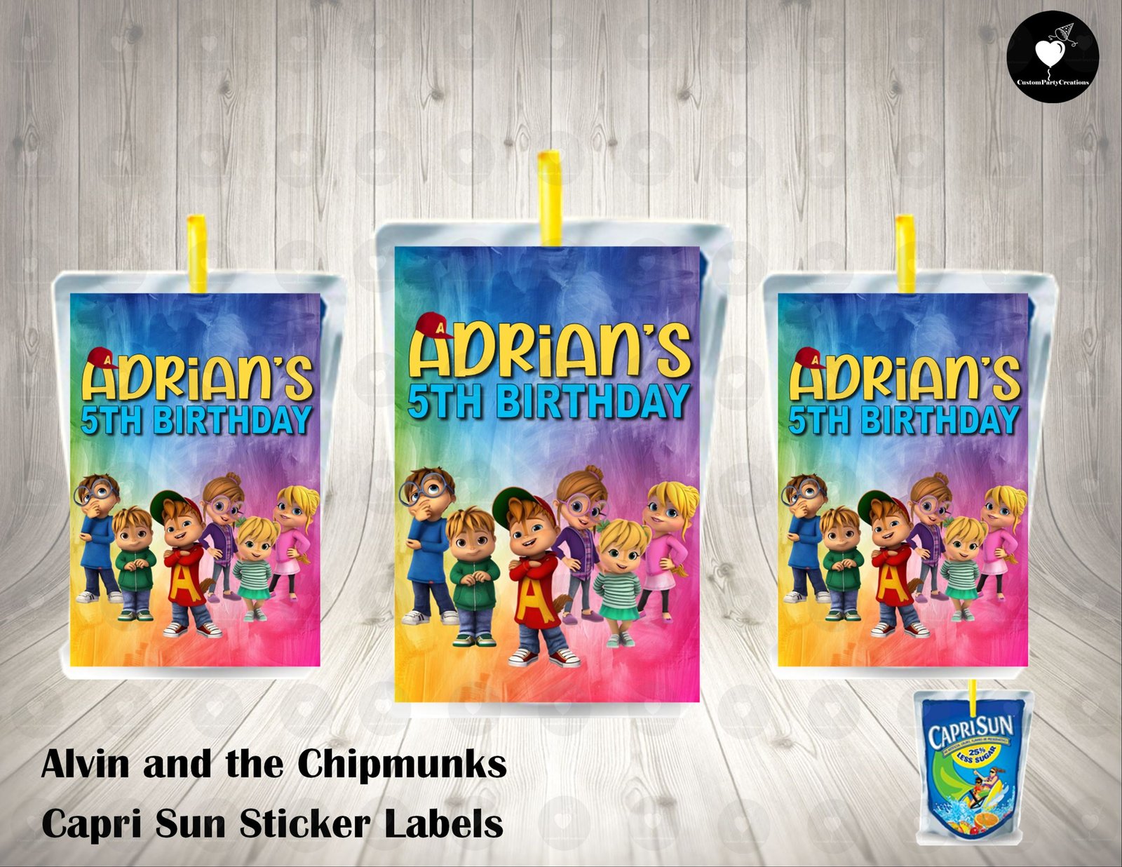 Alvin and the Chipmunks Animated Fun Colorful Capri Sun Labels