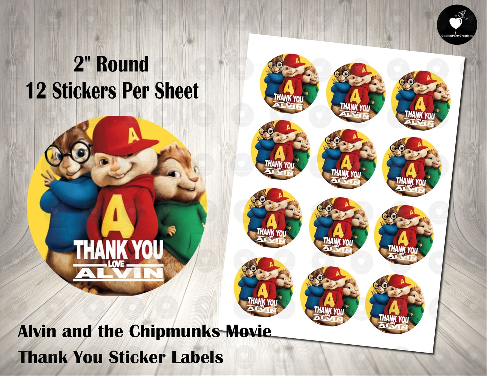 Alvin and the Chipmunks The Movie Fun Colorful 2inch Round Thank You Stickers