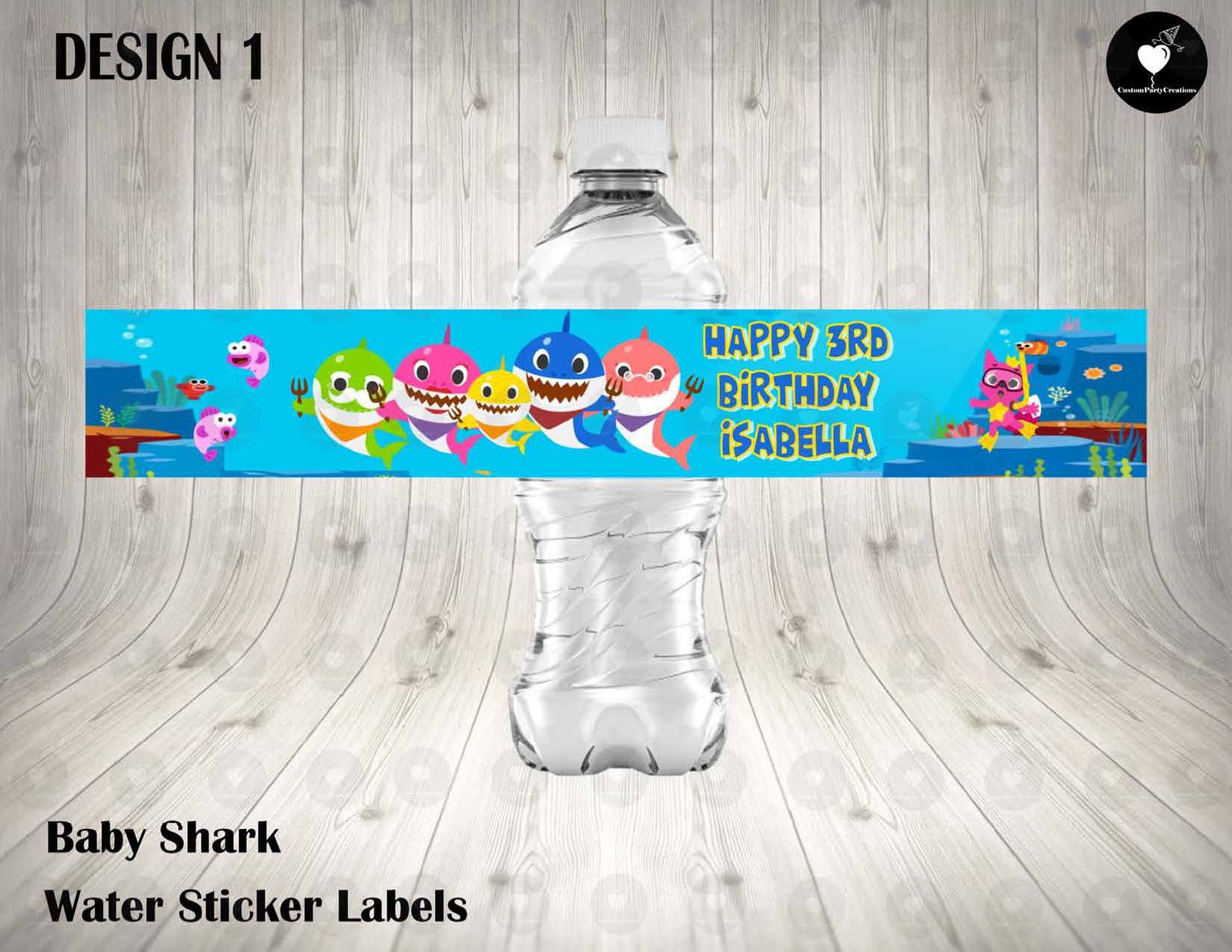 Baby Shark Cartoon Water Labels