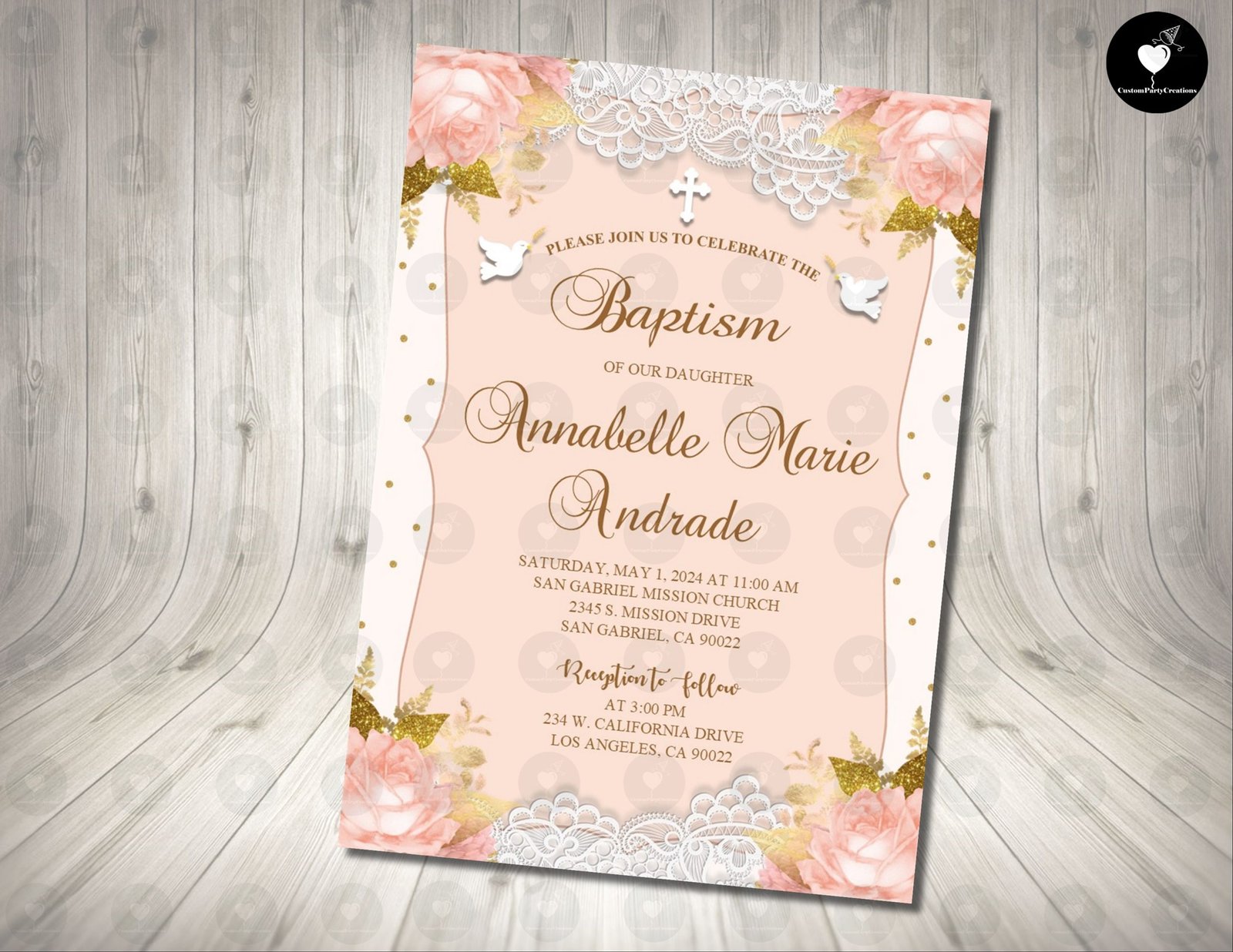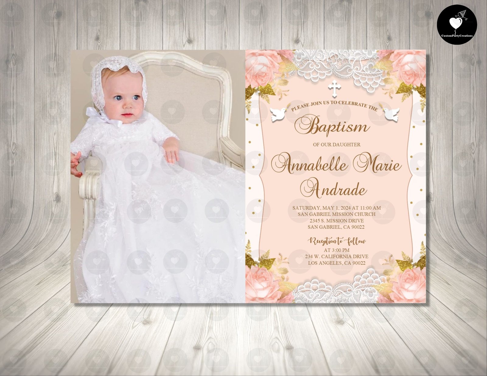 RUSH MY ORDER – Baptism Blush Invitation Birthday Party