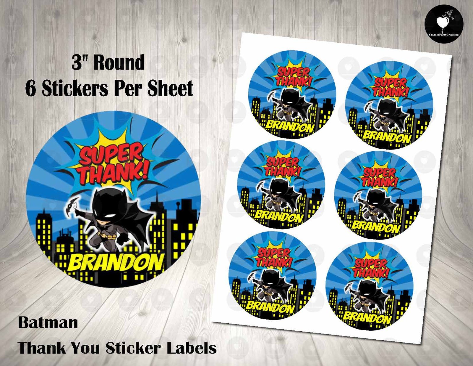 HOW TO ORDER – Batman Kawaii 3″ Round Thank You Stickers