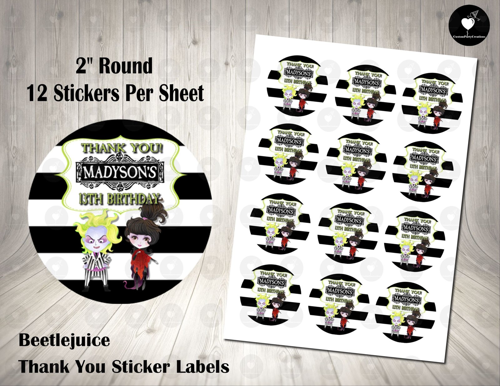 Beetlejuice Scary 2 inch Colorful Round Thank You Stickers