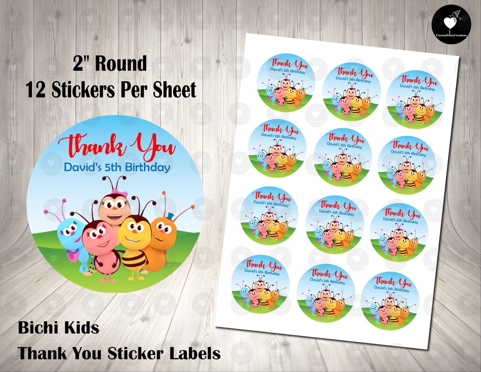 Bichi Kids 2inch Colorful Round Thank You Stickers