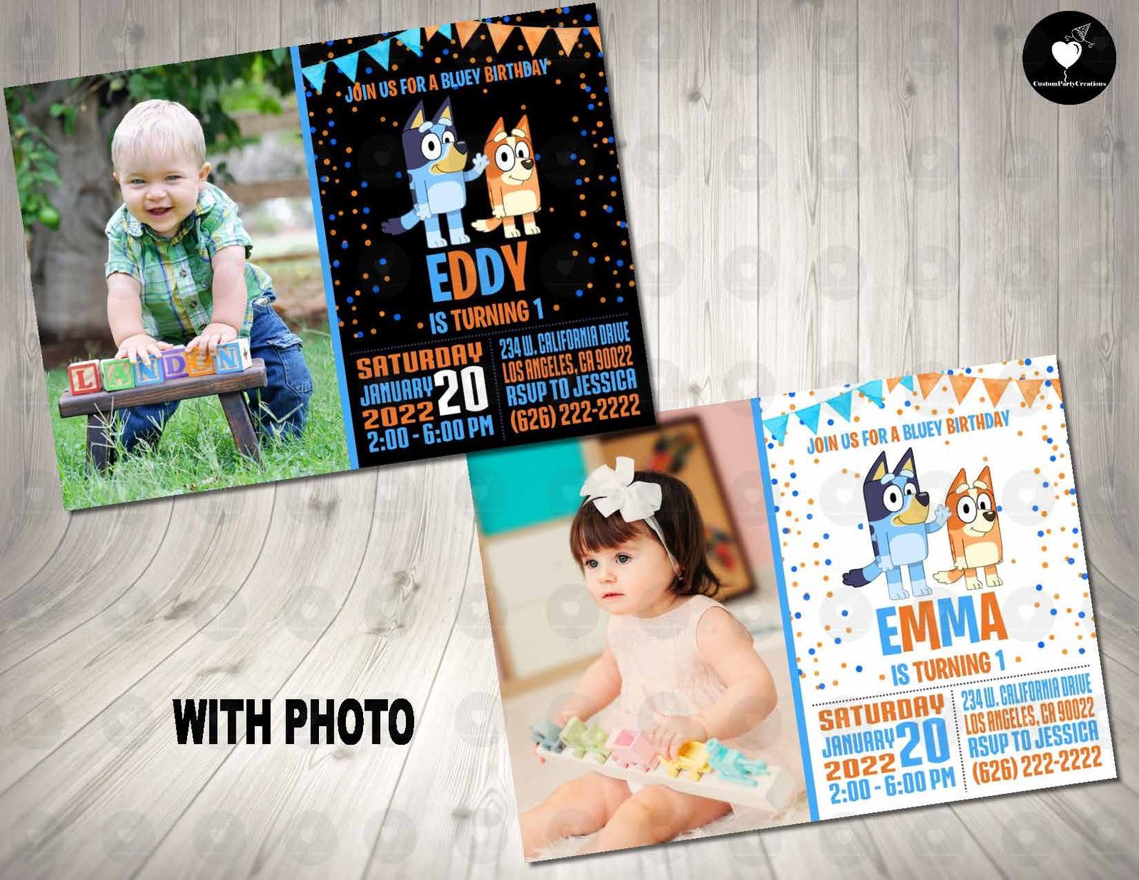 - Photo Invitations: Send us ONE photo.
