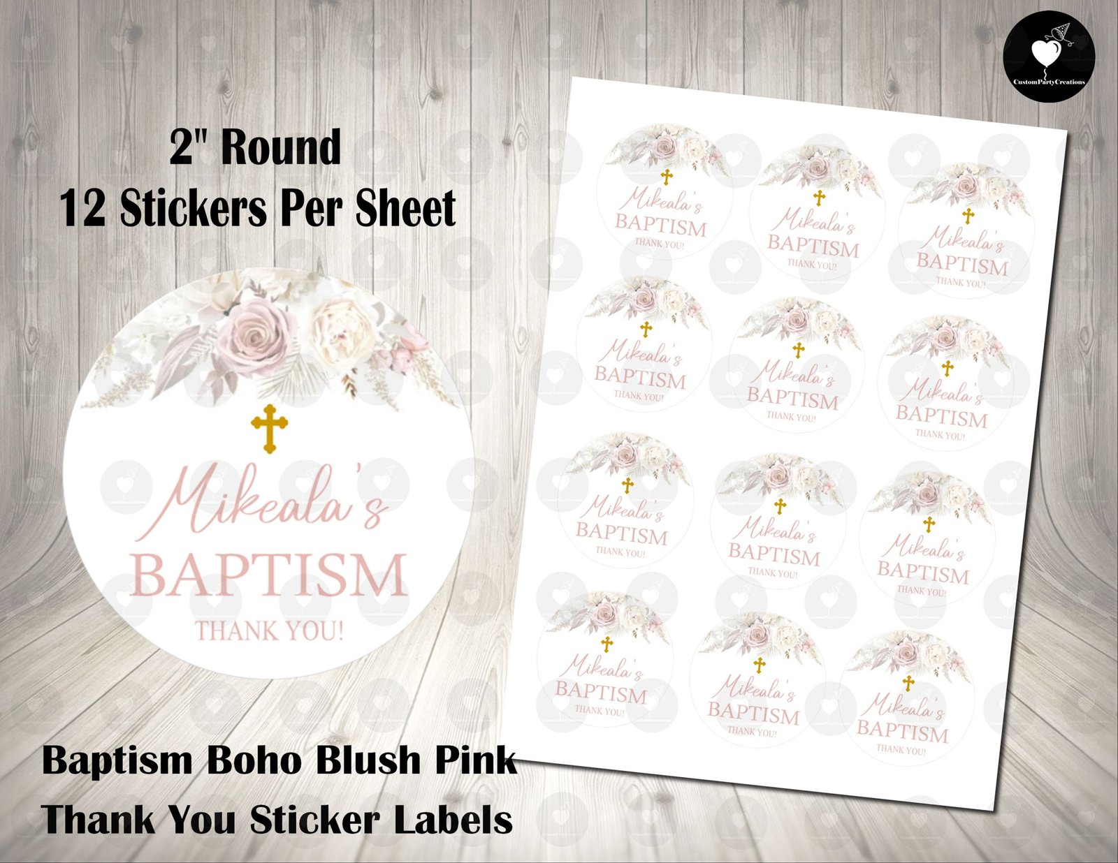 HOW TO ORDER – Boho Floral Pampas Baptism 2″ Round Thank You Stickers