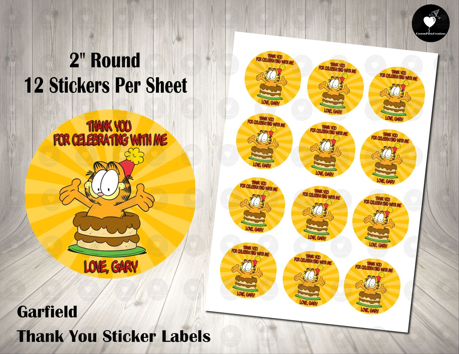 Garfield the Cat 2inch Colorful Round Thank You Stickers