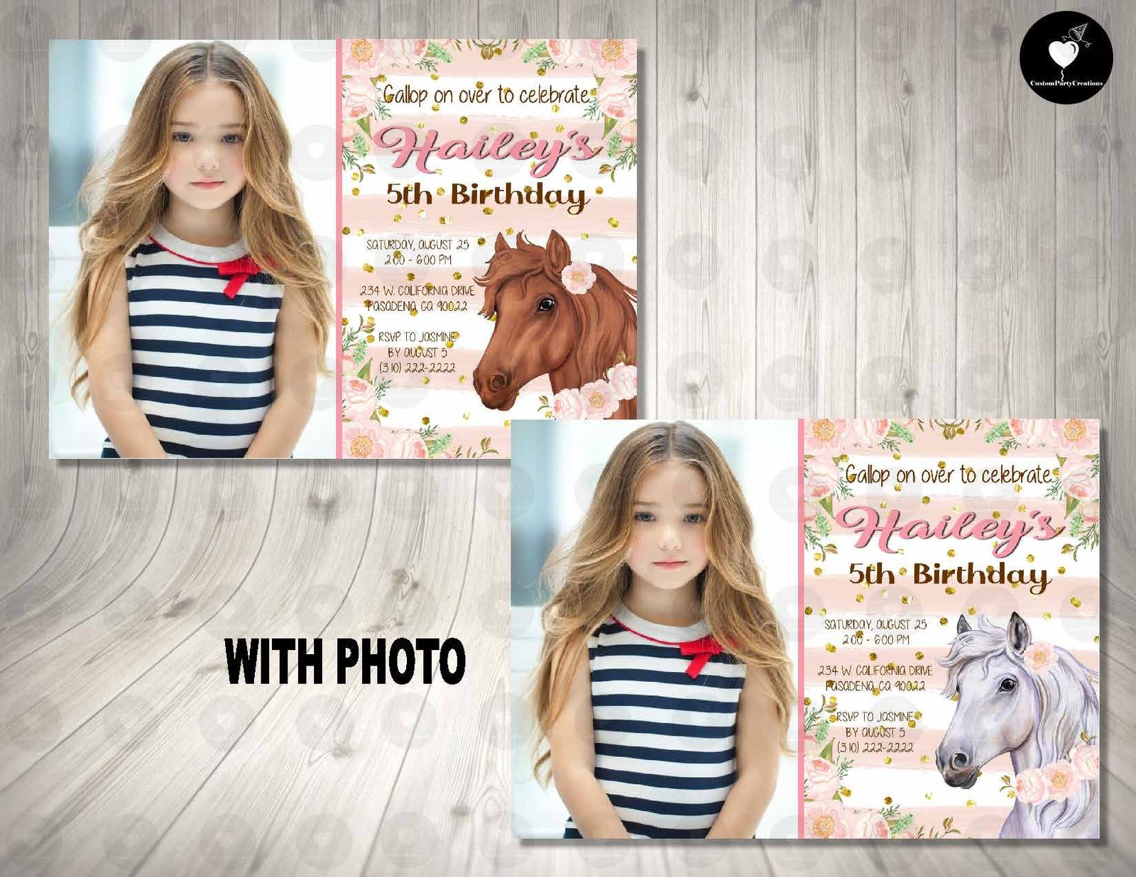- Photo Invitations: Send photo to custompartycreations21@gmail.com