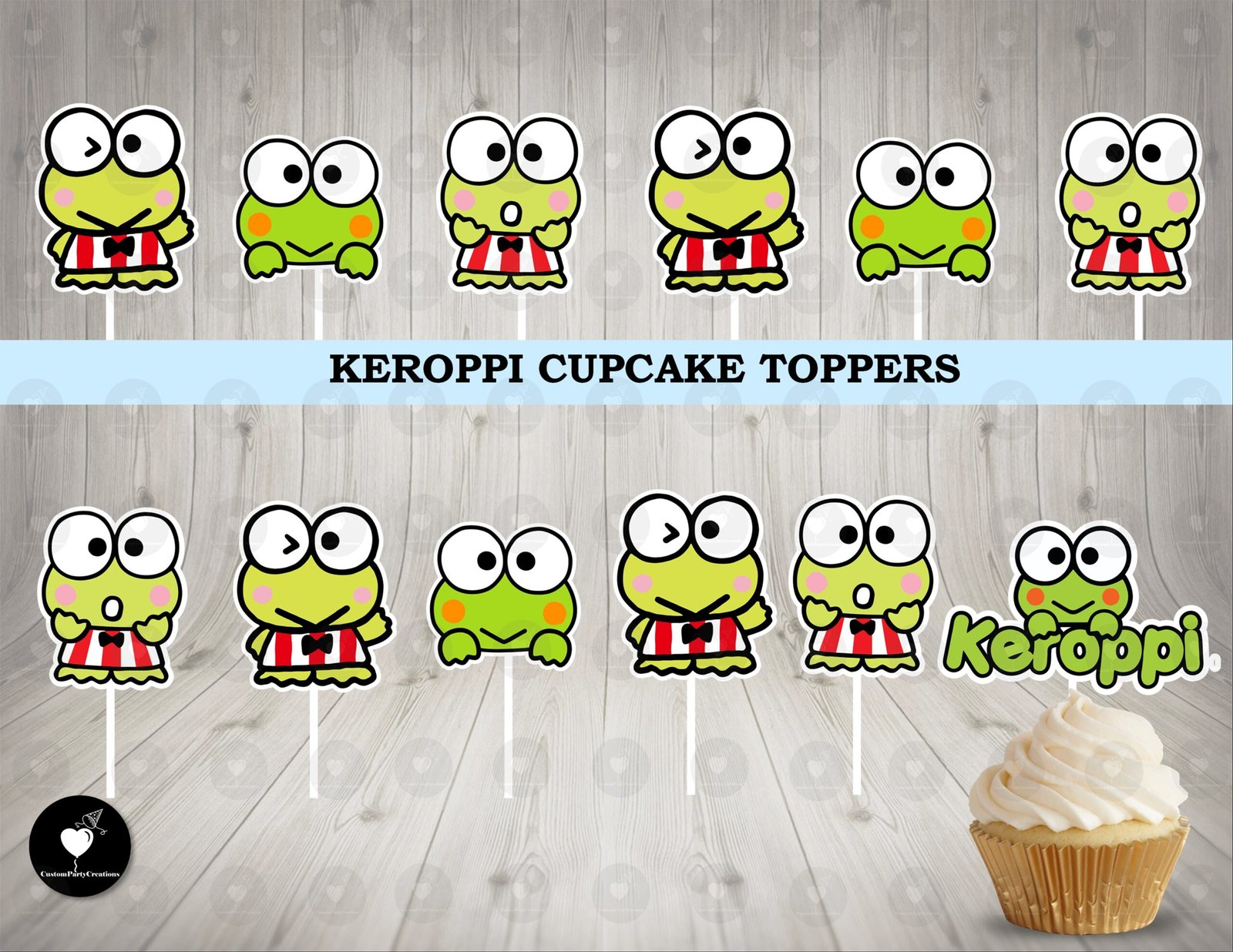 • Set of 12 single-sided cupcake toppers