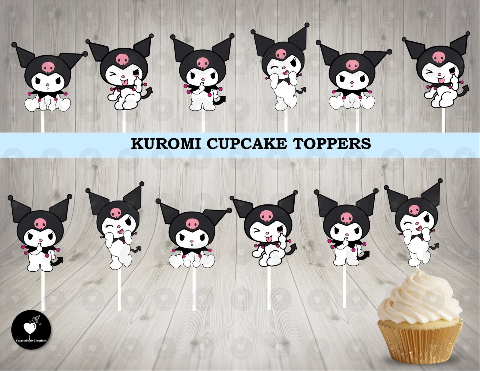 • Set of 12 single-sided cupcake toppers