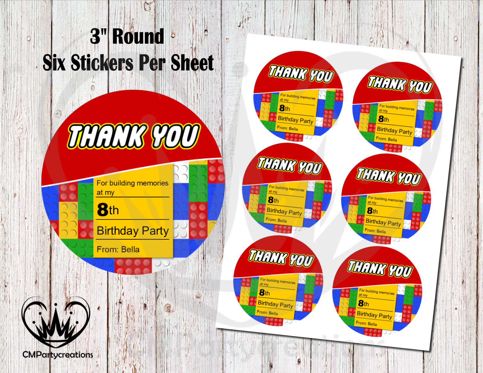 RUSH MY ORDER – Lego 3″ Round Thank You Stickers