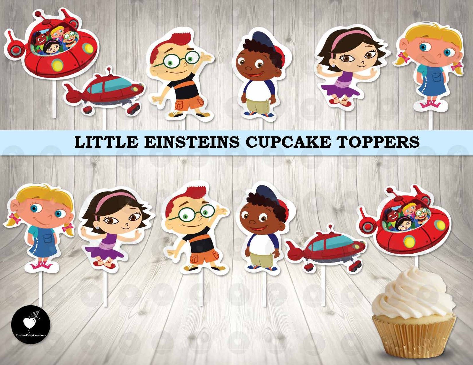 • Set of 12 single-sided cupcake toppers