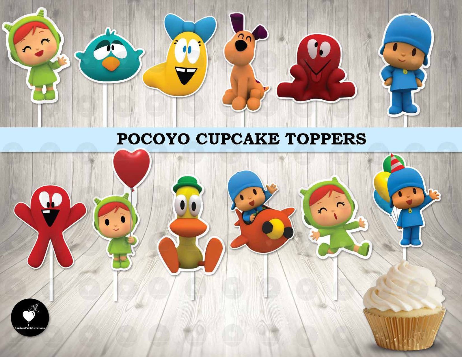 • Set of 12 single-sided cupcake toppers