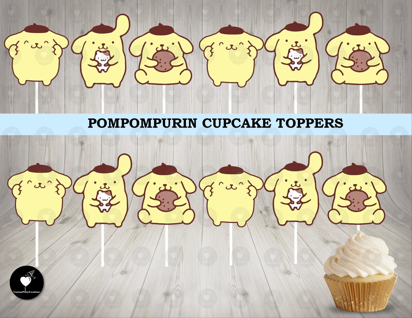 • Set of 12 single-sided cupcake toppers