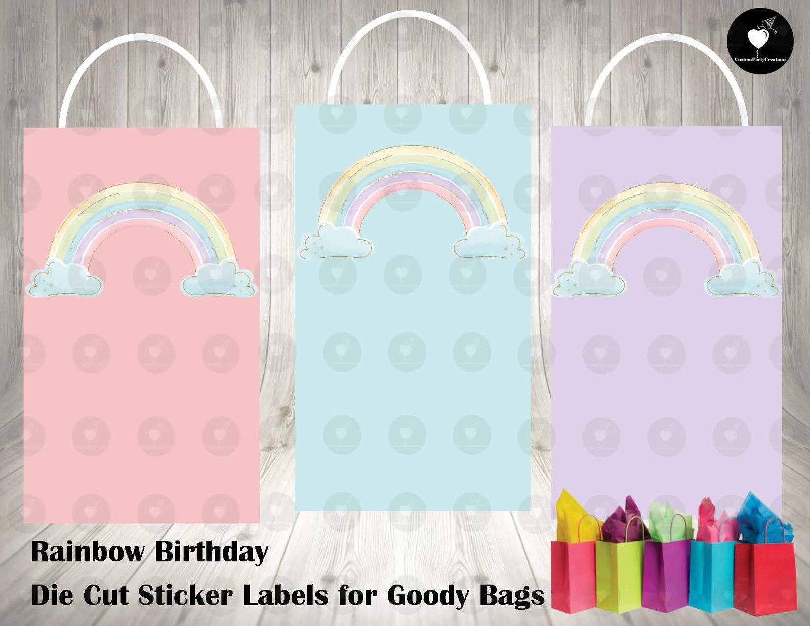 CUSTOM DESIGNS – Rainbow Die Cut Goody Bag Labels
