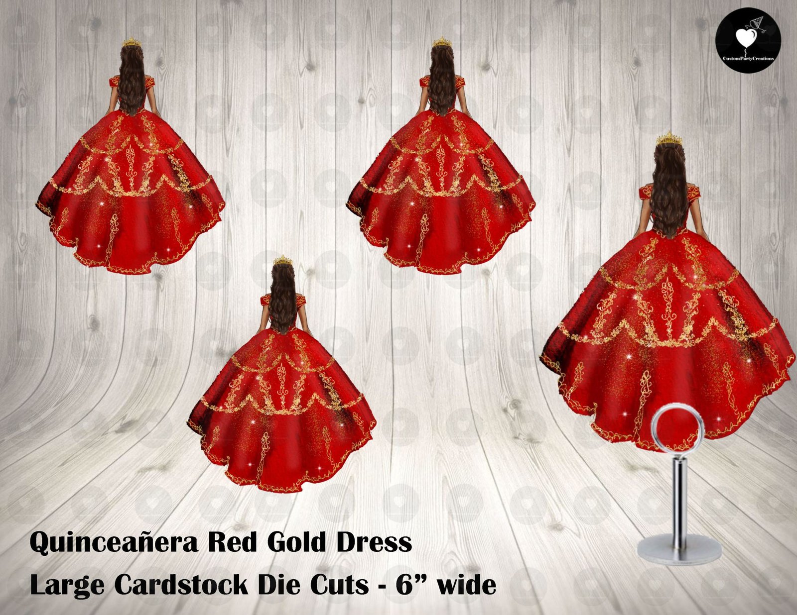 Red Gold Floral Princess Quinceanera 15th Birthday Sweet 16 Large Die Cuts